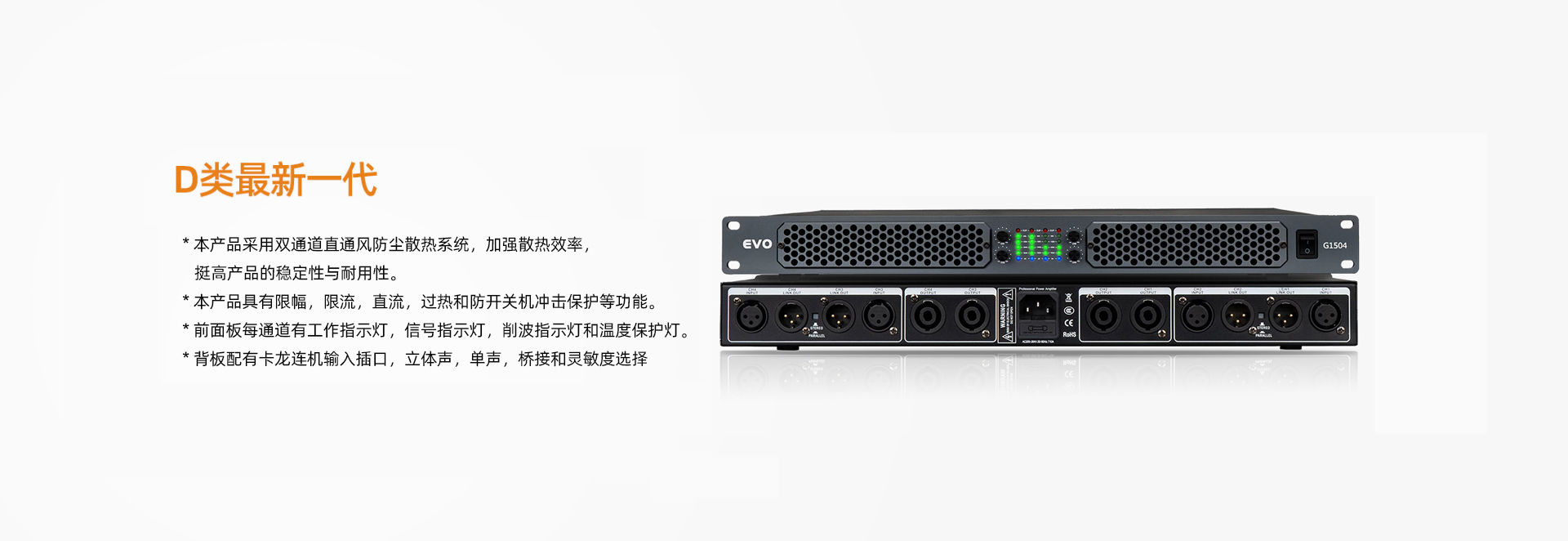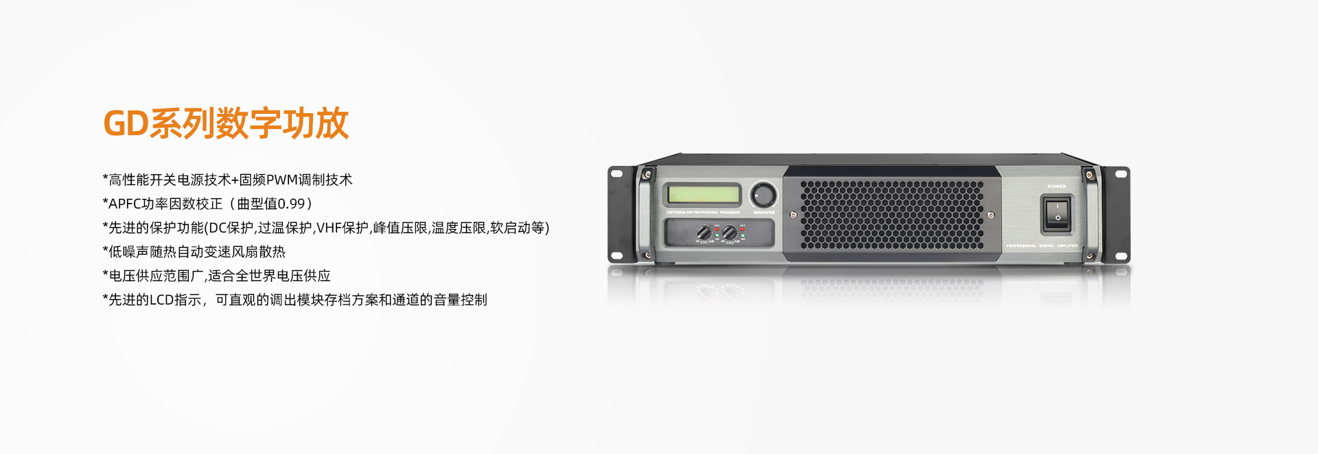 恩平市樂洋電聲是一家專業生產音響功放、數字功放的廠家。目前是集研發、生產、銷售和服務于一體。    公司貼近市場,按照客人需求設計適合用戶的產品。一直以來都是選擇高品質的電子元器件,從源頭保證產品的質量。    長期以來堅持采用嚴格的質量標準,產品從半成品到成品每一道工序都經過嚴格的檢測,檢測不合格的產品不能出廠。    公司創建于2014年,擁有一批多年生產經驗的技術人員,生產設備先進、檢測系統完善,具有可靠的質量保證體系,產品深得國內外客戶及用戶好評和信賴。   ··· 歡迎廣大新老客戶OEM, ODM!